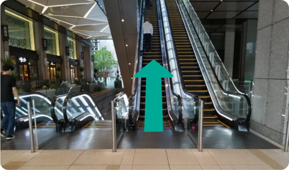 京橋エドグランに到着後、地上階からエスカレーターにて3階へ