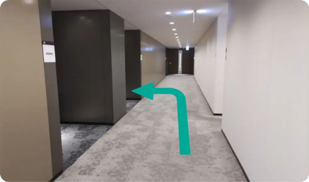 29階到着後、エレベーター横の廊下から右手にお進み下さい