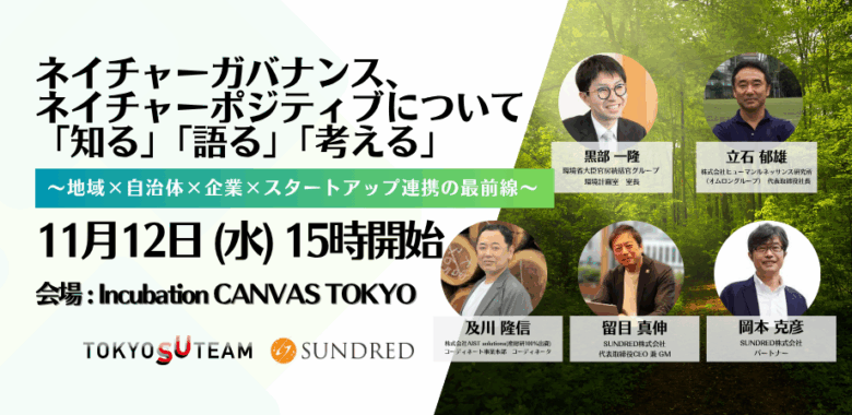 SUNDREDが推進する共創型イベント「ネイチャーポジティブへの旅」から生まれた、新産業共創プロジェクトのキックオフ。自然資本を軸に、スタートアップと共に「ネイチャーガバナンス産業」を創る第一歩を踏み出します。