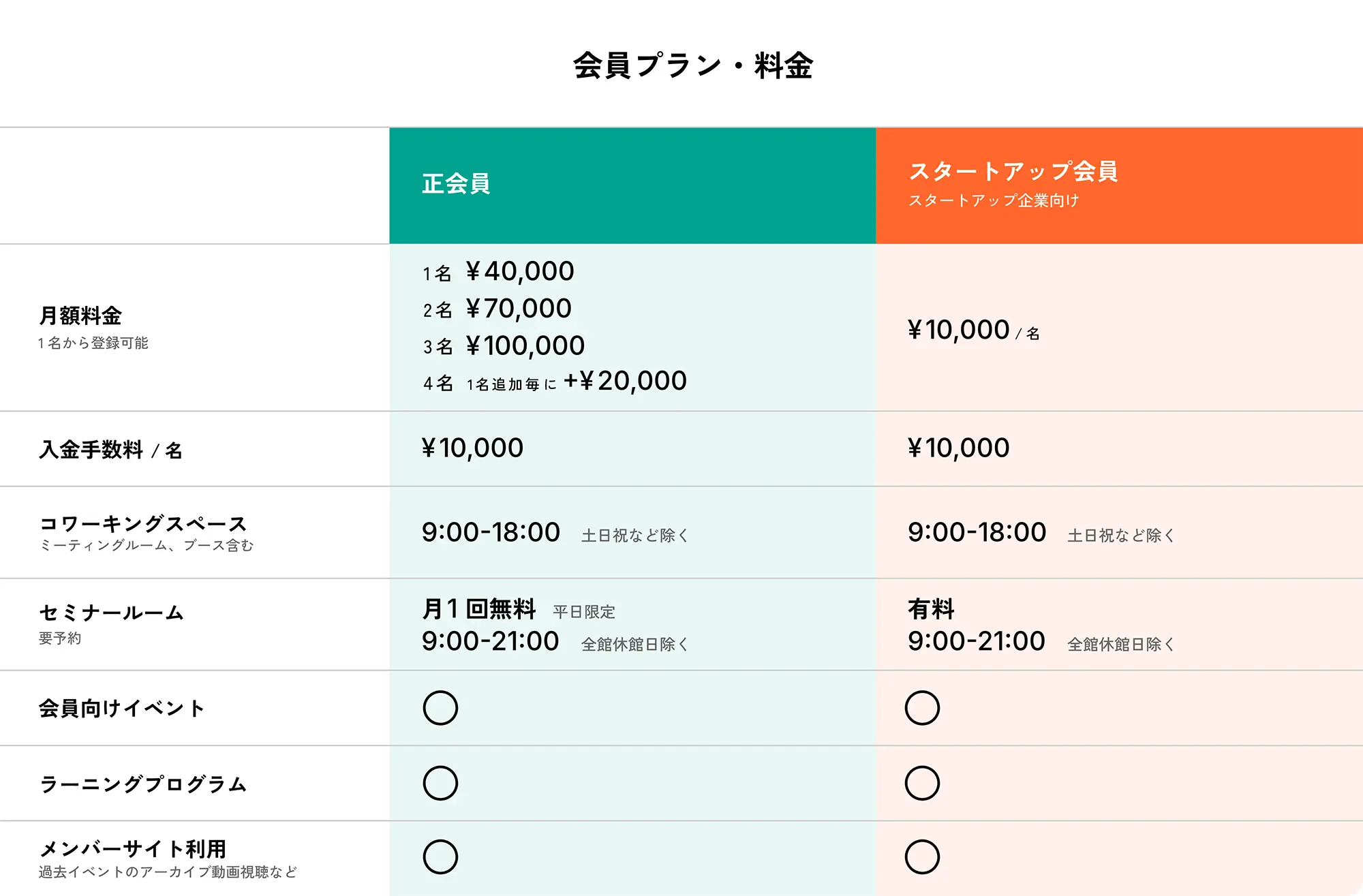 専業会社、起業家向けの人材育成プログラムなど、イノベーションに必要なスキルを学べる有償プログラムに、会員特別価格で参加可能です。